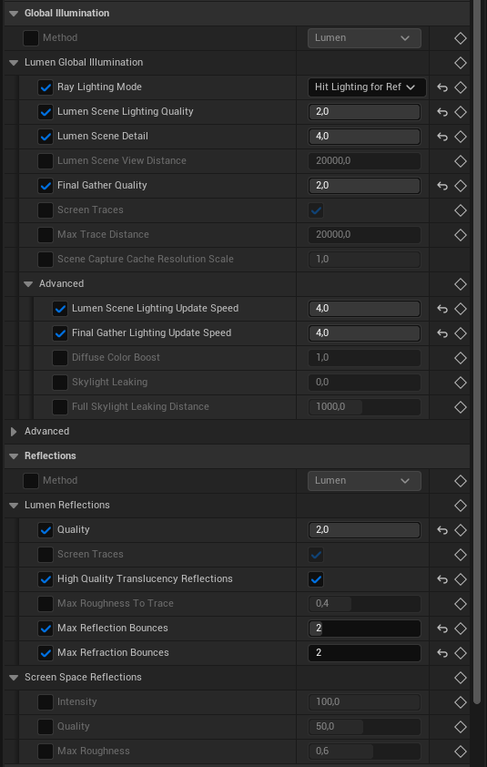 – Global Illumination – Lumen (boost max.)